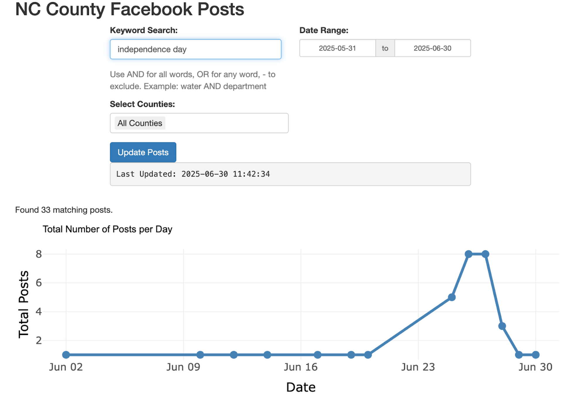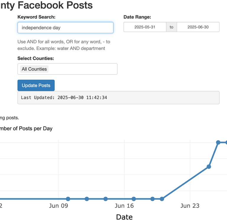A searchable archive of government posts, sortable by topic, location, and engagement